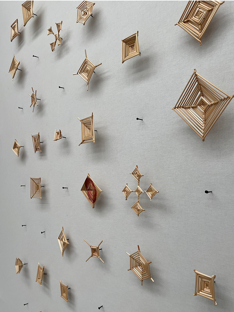 Life support systems (offering). Plaster, wheat, copper coated steel, pigment.